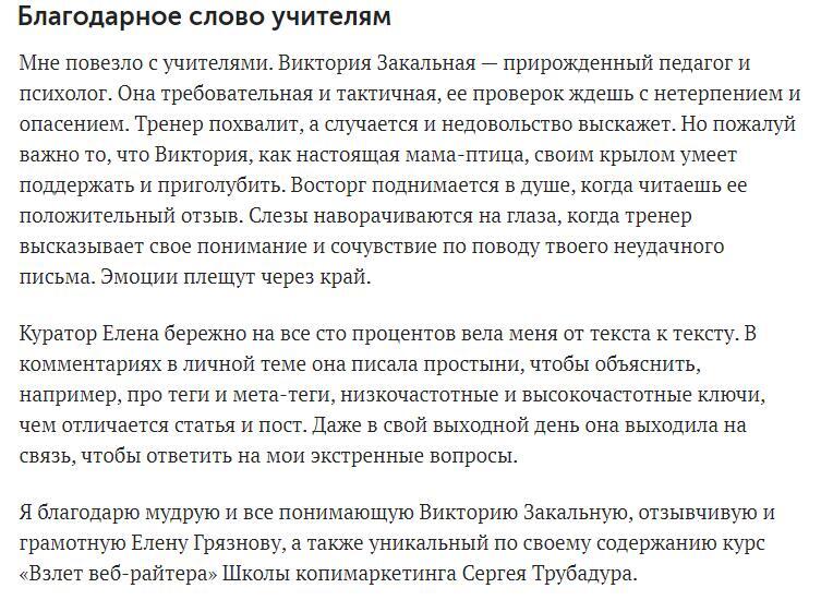 В нашей прошлой, закрытой программе «Взлет веб-райтера» за 4 года скопился внушительный объем информации. Ты можешь изучить темы выпускников и обогатить свой опыт бизнес-автора.