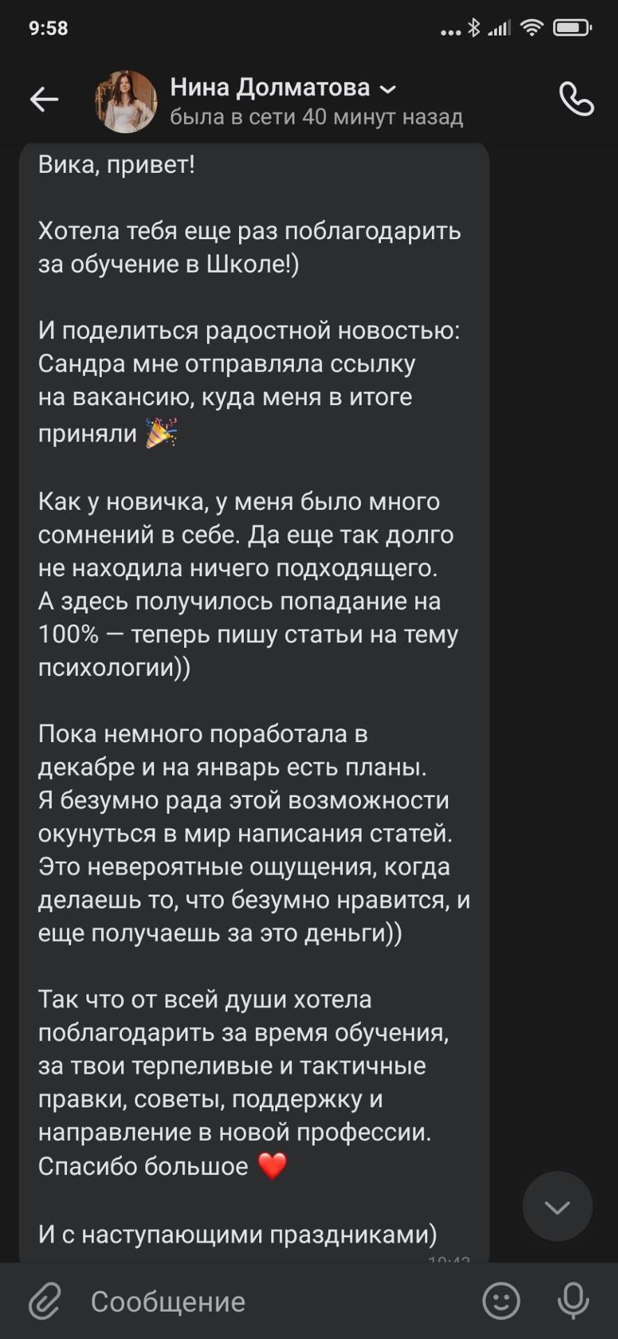Одна из задач курса и твоего наставника — помочь развить самостоятельное мышление. Именно поэтому мы даем рекомендации, советы, дополнительные задания, но не исправляем текст за тебя. Такой подход поможет преодолеть страх перед реальной работой.