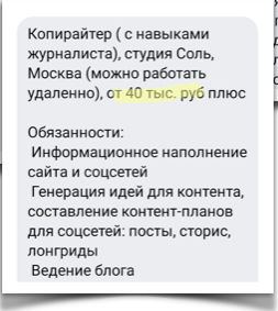 Давай вместе пробежимся по вакансиям. Я хочу доказать тебе, что мир изменился. Веб-райтинг теперь прибыльная и престижная профессия. Минимальная ставка — 40 000 рублей в месяц для новичков
